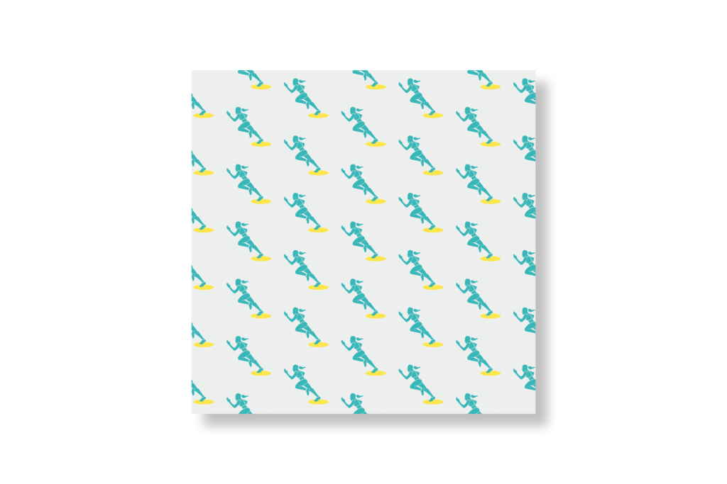A repeating pattern designed for a fitness app, built around rhythm, movement, and continuity across digital touchpoints. The running figure becomes a modular unit, creating a visual system that feels energetic and in motion while remaining clean and legible. The pattern is intended to support interface moments without overwhelming them, reinforcing a sense of momentum, routine, and daily engagement within the product.
