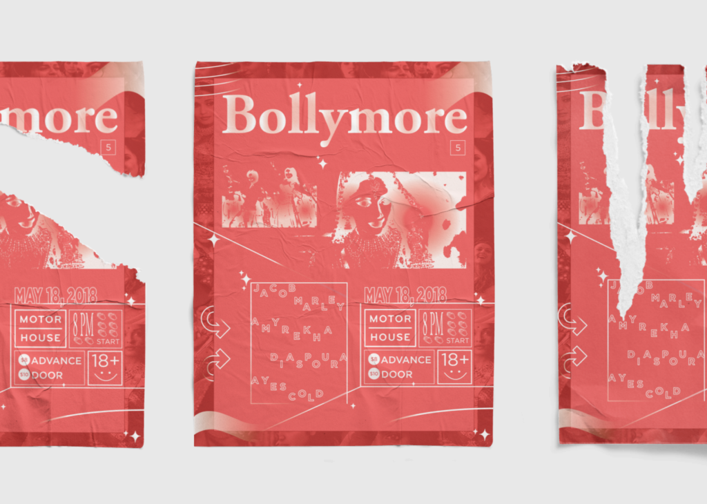 A poster for a South Asian club event, drawing on the visual language of American political campaign graphics to frame nightlife as a space of gathering and collective energy. Bold typography, structured layouts, and high-contrast imagery position the event as something to rally around, while layered visuals reference movement, performance, and cultural memory. The design centers community, treating the dance floor as both a social and cultural site.