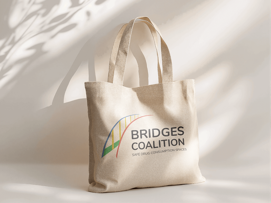 A logo designed for the Baltimore Harm Reduction Coalition, a community-based organization focused on public health, advocacy, and collective care. The form draws from a local rainbow bridge, using its color language to reference connection, transition, and support across communities. The identity reflects the organization’s commitment to dignity, safety, and mutual responsibility, translating these values into a clear and accessible visual mark.