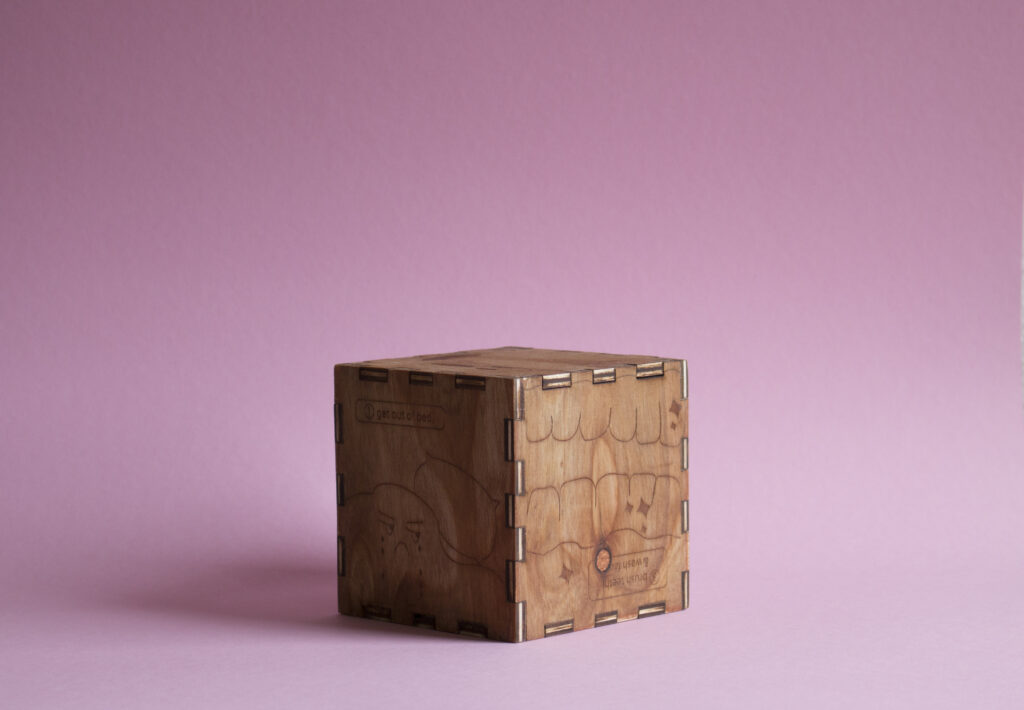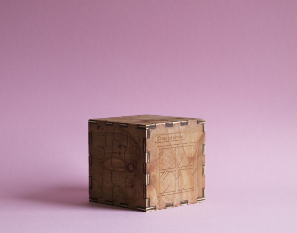 A puzzle box project exploring shifting moods and routines in the early hours of the day. Designed and fabricated using laser cutting and 3D printing, the object invites tactile interaction and gradual discovery through its form and construction. The piece reflects on small, transitional moments (waking, adjusting, assembling) using play and materiality to capture the variability and quiet complexity of a morning experience.