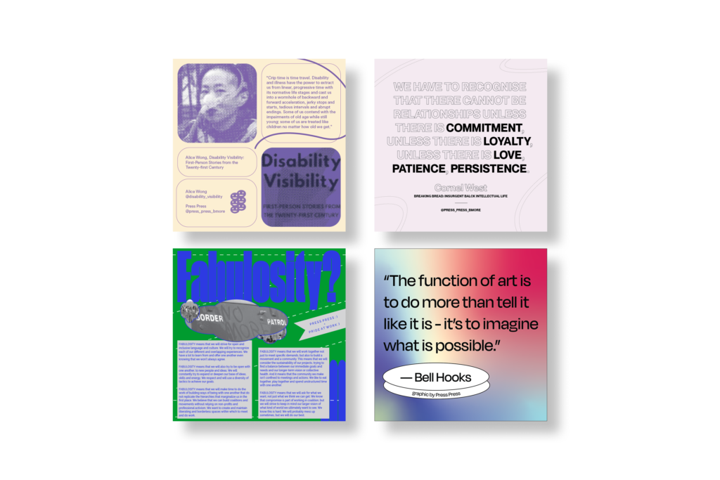 I designed this series of social media graphics as a flexible system for sharing ideas, quotes, and community-driven content. Working within the constraints of a square format, I focused on creating bold, legible compositions that could stand alone while still feeling cohesive as a set. Each post balances text and image differently, allowing for variation in pacing and tone while maintaining a consistent visual language.
