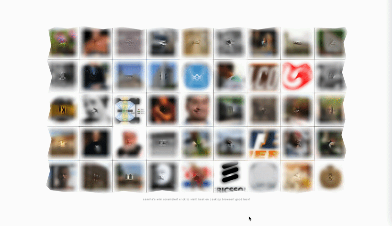 I designed Wiki Scrambler as an interactive web project that reimagines how we navigate information online. The site pulls images from Wikipedia and rearranges them into a shifting grid, inviting users to browse through fragments rather than fixed narratives. The experience is less about searching for something specific and more about discovering unexpected connections through chance and proximity.